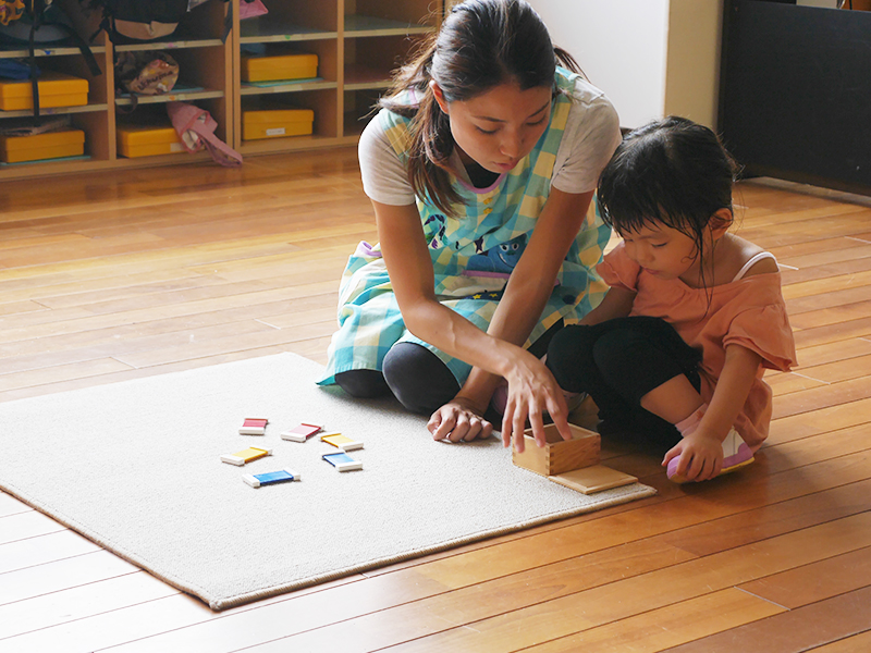自主的個別活動は、個々の子どもが抱く興味や関心、今やりたい事、そのような一人ひとりの欲求を満たす環境を準備し、子どもたちが自ら考え、挑戦することで得られる達成感を通じて子どもたち一人ひとりの人格形成へとつながっていきます。
